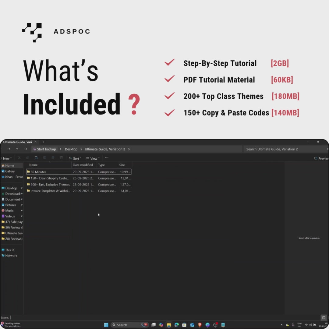 With my templates, codes, and 60-minute tutorial, beginners learn how to build clean, premium Shopify websites quickly.